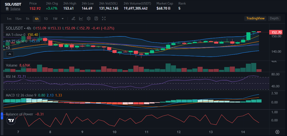 And surprisingly, Solana can easily reach this resistance level. When this article was written on October 14, the SOL price was trading at $152.92, surpassing the price target of $210.