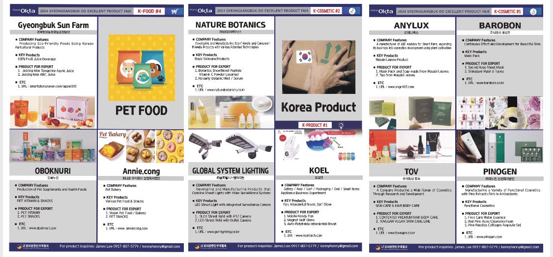 Overseas Korea Traders Association (OKTA) in the Philippines in organizing the Gyeongbuk Excellent Products Philippines Exhibition 2024 on November 21-23, 2024 at Robinsons Galleria Activity Area, Pasig City, 25 Korean Companies will exhibit their products including but not limited to; agricultural products, cosmetics and skin care, , food, drinks and condiments, home essentials and pet foods and vitamins
