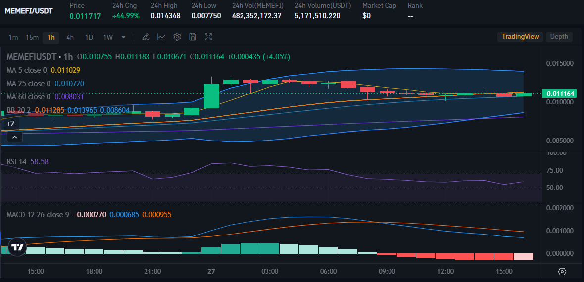 At the time of writing this article on November 27, MEMEFI is at $0.011717 with an increase of almost 45%. MEMEFI RSI value is at 58.58 which means the buying trend is more dominant than the selling trend with the MACD line above the limit line. This means that MEMEFI bullish will occur soon.