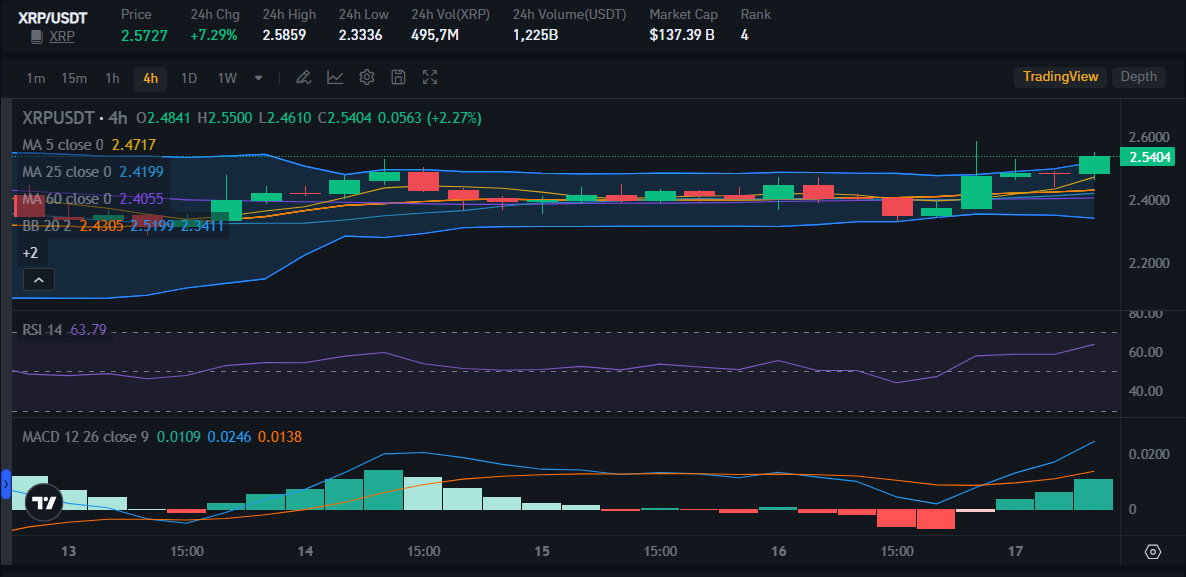 XRP’s price surged to a seven-year high of $2.90 on December 3, 2024, before entering a corrective phase. As of this article is written on December 17, XRP trades at $2.5727—an 7,29% pullback after tripling its value in the past six weeks.